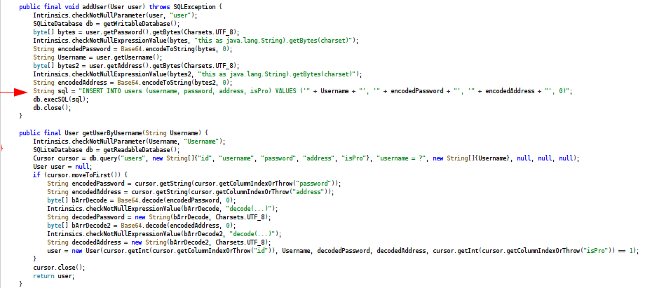 Otro punto de explotación aparece al analizar la clase DBHelper.